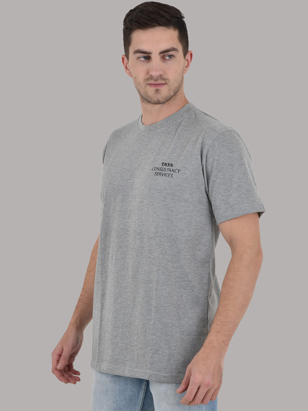 Short sleeves charcoal grey round neck t-shirt made in single jersey fabric. Branding done by screen printing at front and back to increase the love for your college. Available in others colour too.