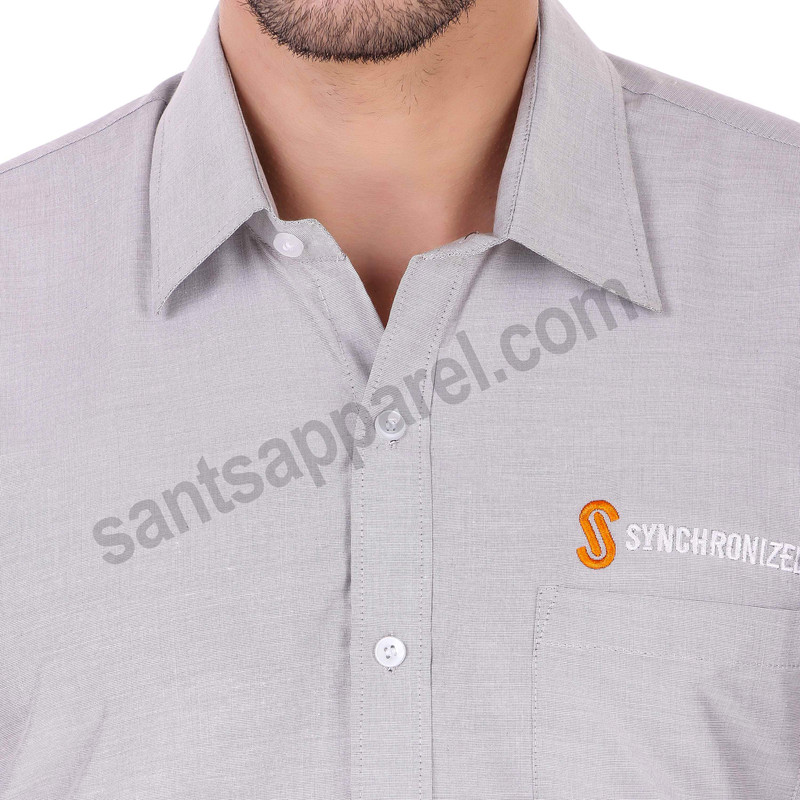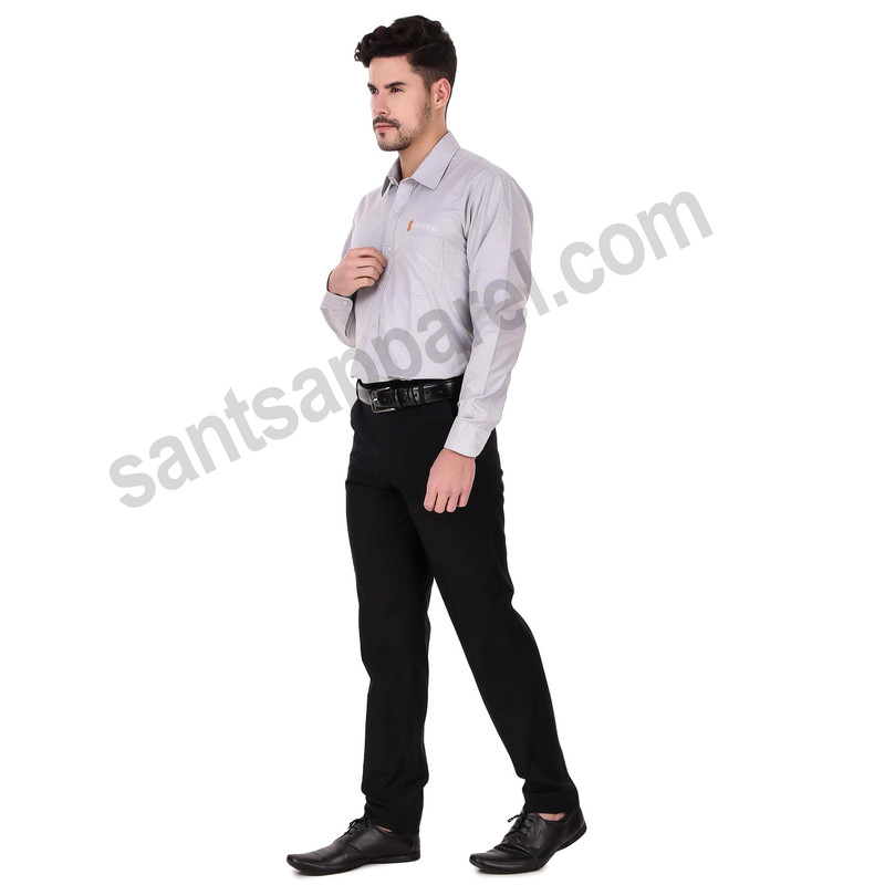 Grey Cotton full sleeve shirt with elite stitching, best for corporate shirt and staff uniform, Logo embroidery done for brand visibility. Can be paired with black and navy trouser for sharp look.
