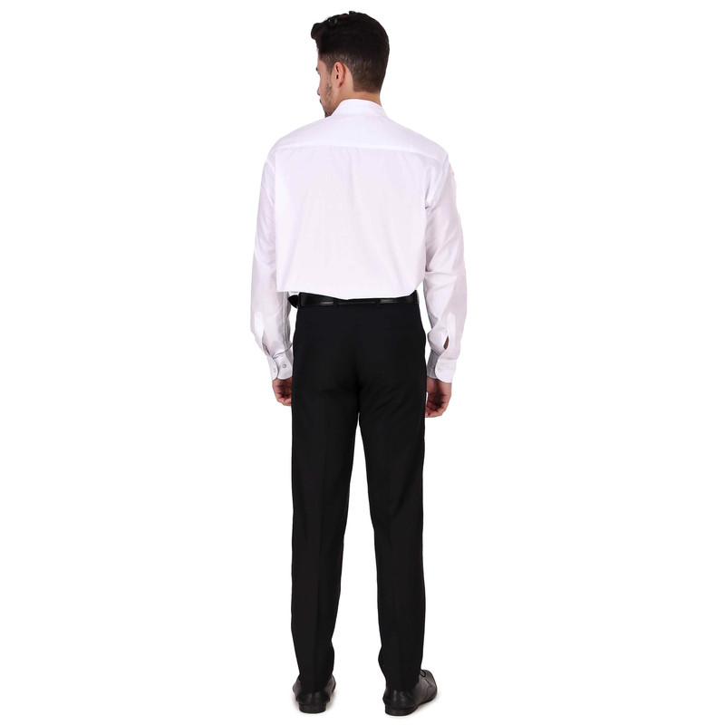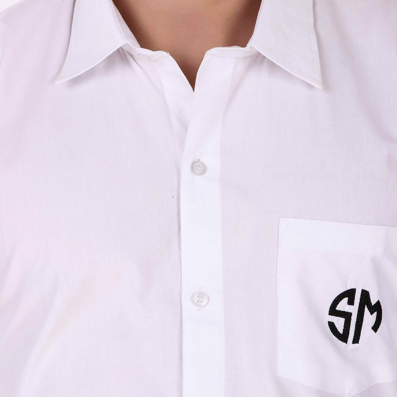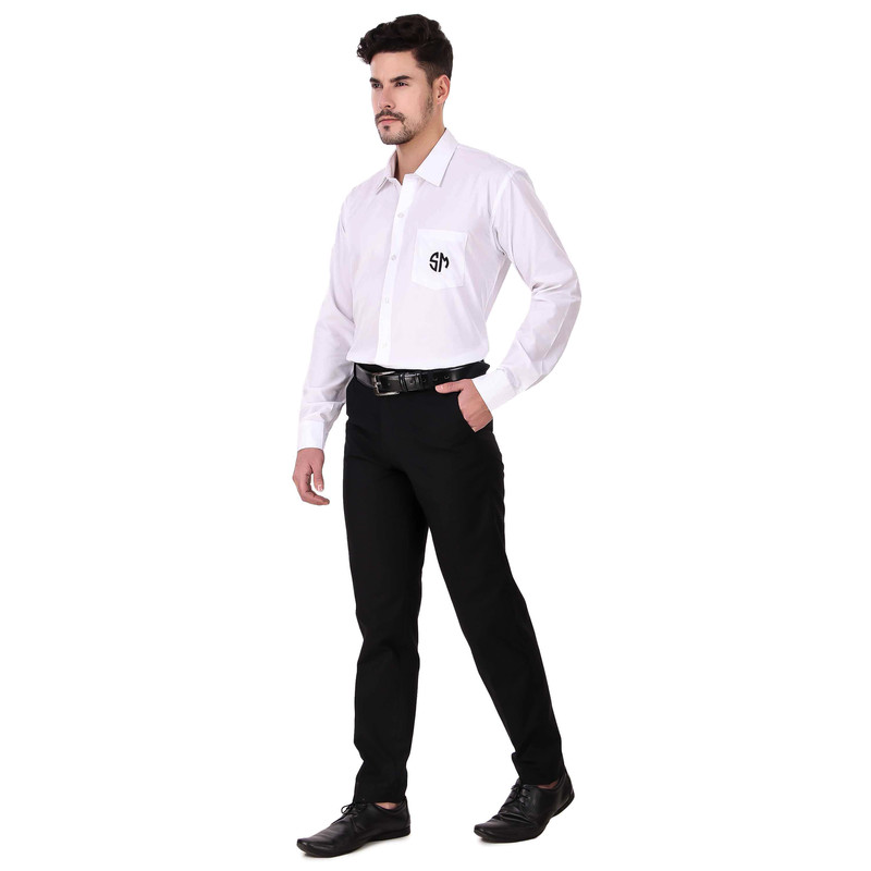 Premium White full sleeve formal shirt made in PC fabric with elite pointed collar, embroidery done up pocket for Brand Visibility