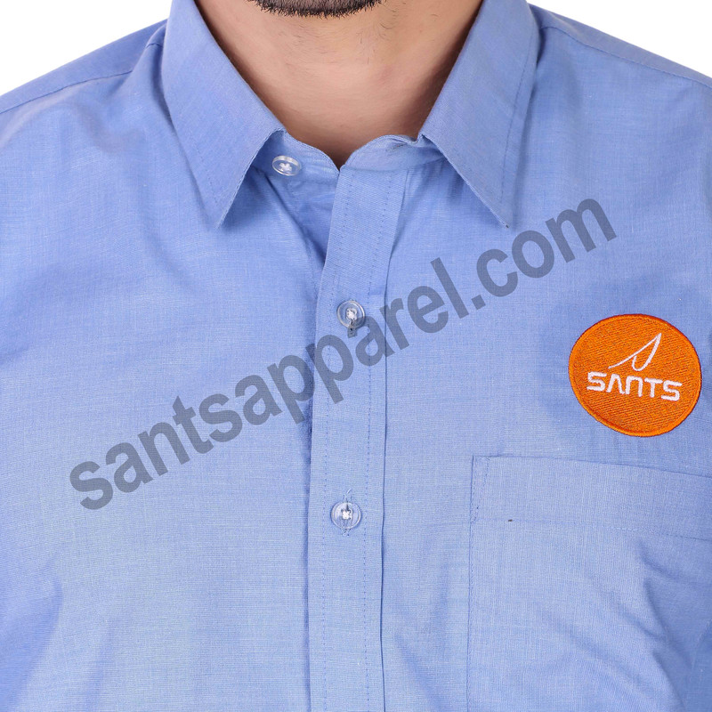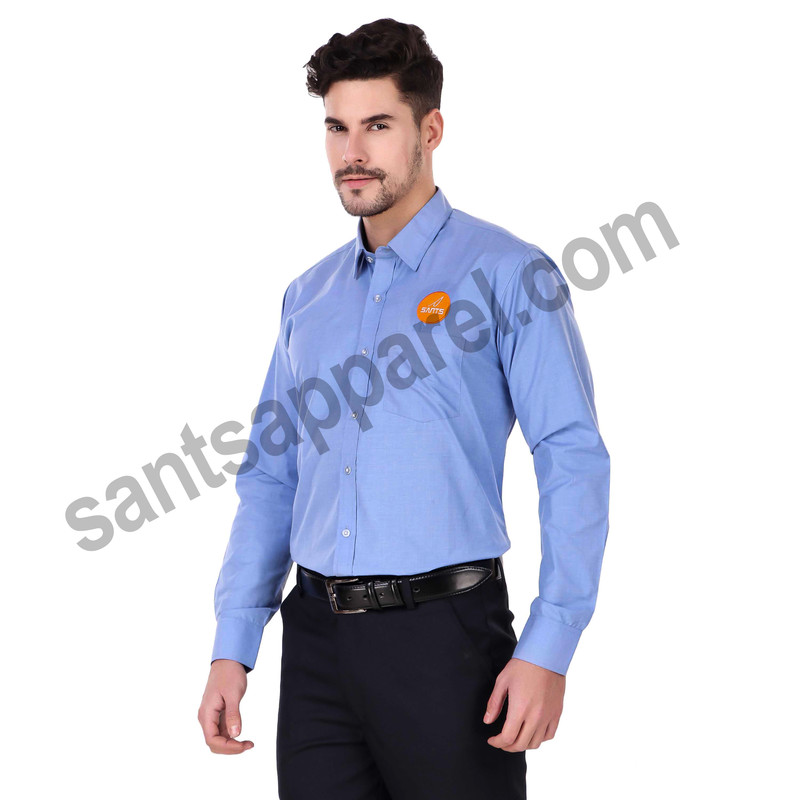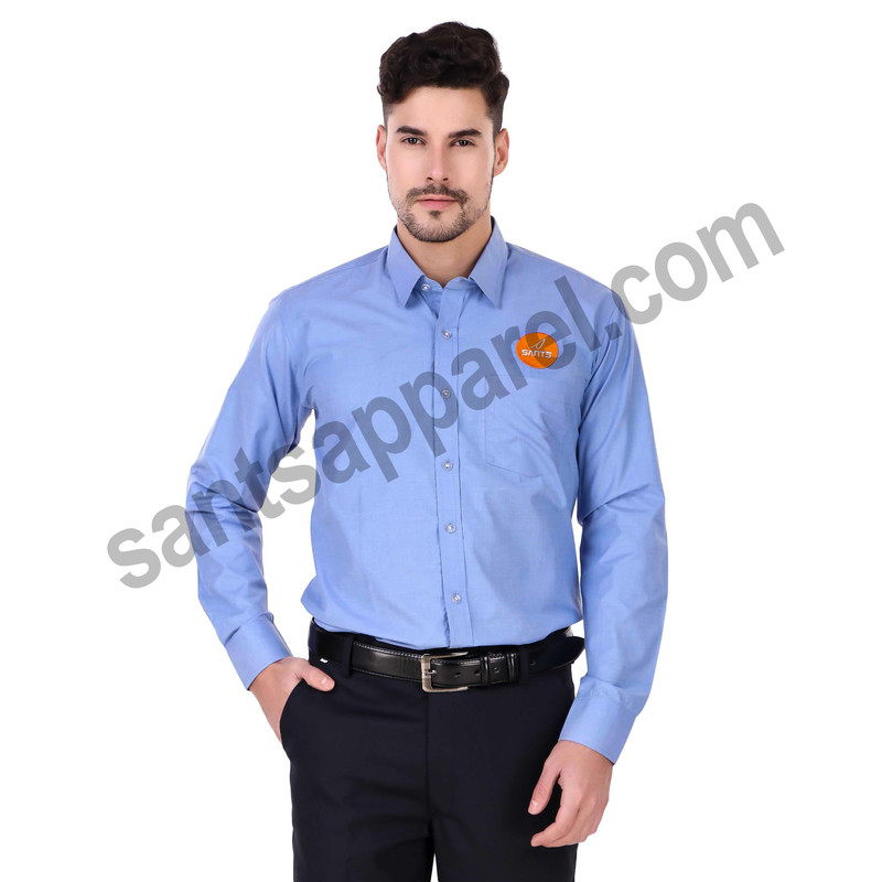 Office Blue Cotton full sleeve shirt with elite stitching, best for corporate shirt and staff uniform, Logo embroidery done for brand visibility. Can be paired with black and navy trouser for sharp look.