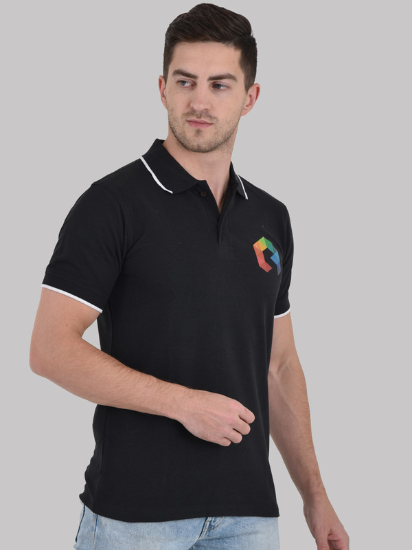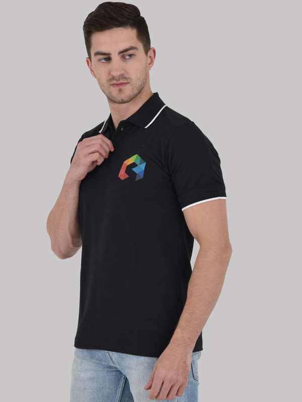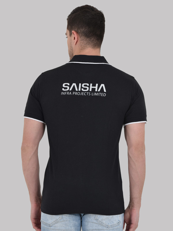 Short sleeves Black polo made in Cotton Rich Pique fabric with soft hand feel including embroidery at front and back to increase the brand visibility. Custom designed ribbed collar and cuff matching with the brand colours to create a smart formal corporate look. Available in others colour too.