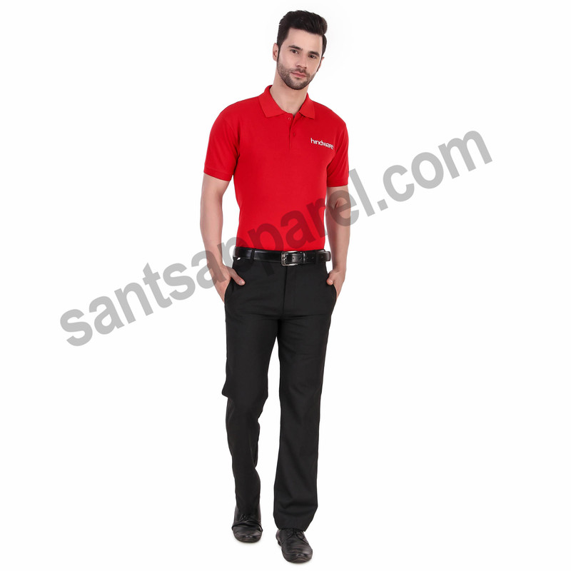 Short sleeves Red polo made in Cotton Rich Pique fabric with soft hand feel including printing at front to increase the brand visibility. Ribbed collar and cuff matching with the brand colors to create a smart formal corporate look. Available in others colour too.