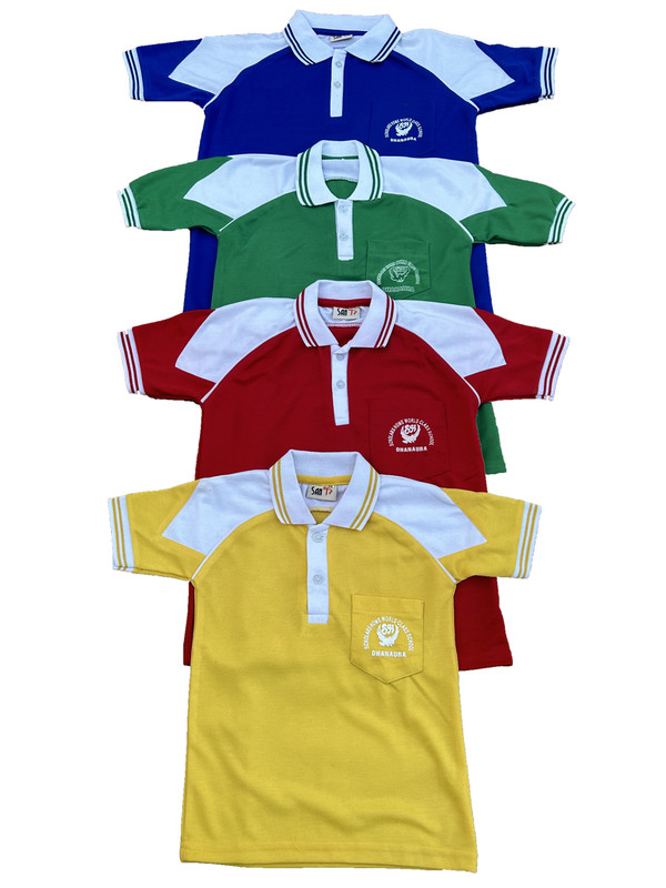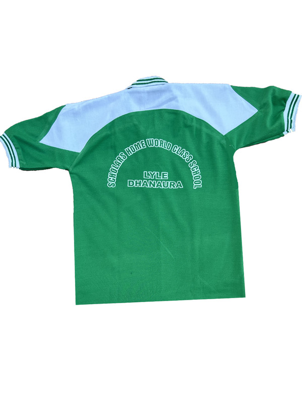 SCHOOL UNIFORM T-shirt with Nicker or Half-Pant, Comfortable and smart design of school uniform for your smart school kids, It has very comfortable and eye catchy green colour school collar & polo T-shirt in half sleeve, Cotton Matty fabric, has two button with contrast placket along with customized knitted collar & sleeve cuff, School t-shirts with pocket, Designer t-shirt of school uniform, school logo printing on pocket along with customized school nicker or school half pant having piping of green colour to get the perfect match with t-shirt