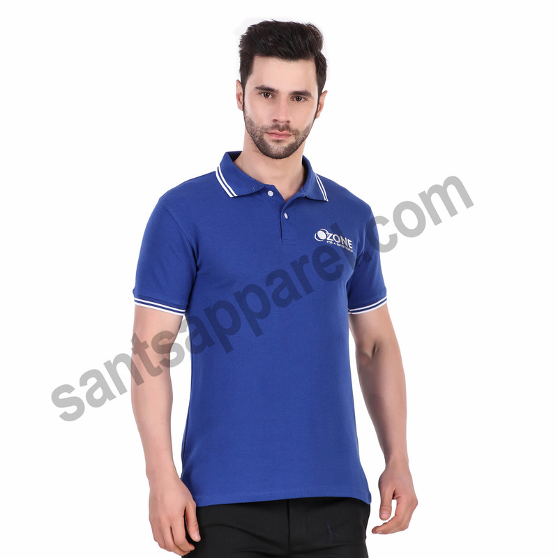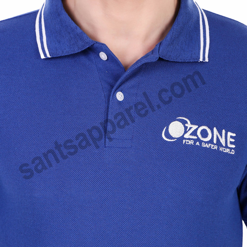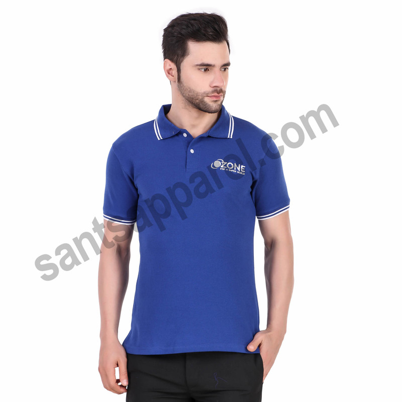 Short sleeves blue polo made in Cotton Rich Pique fabric with soft hand feel including embroidery at front to increase the brand visibility. Custom designed ribbed collar and cuff matching with the brand colors to create a smart formal corporate look. Available in others colour too.