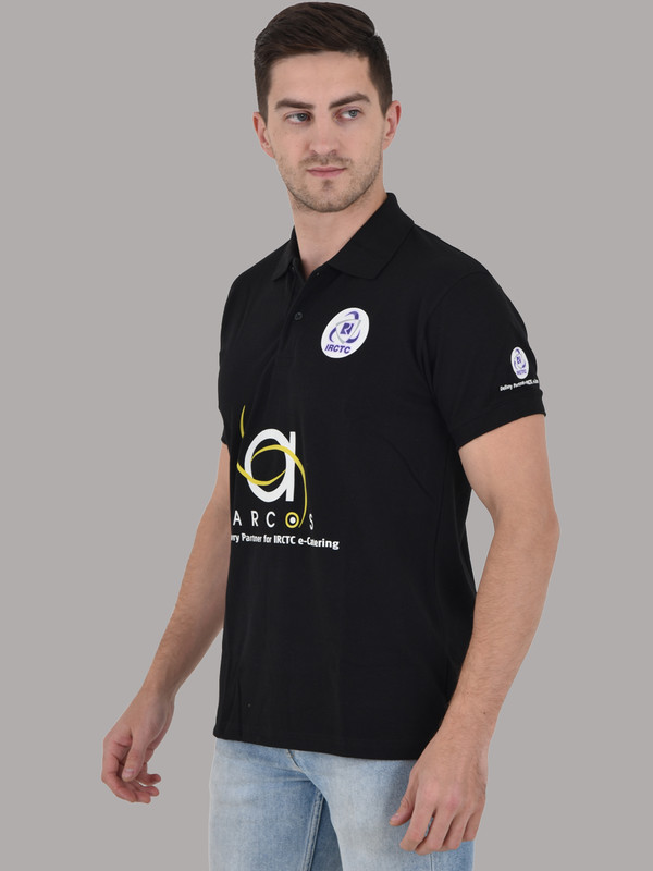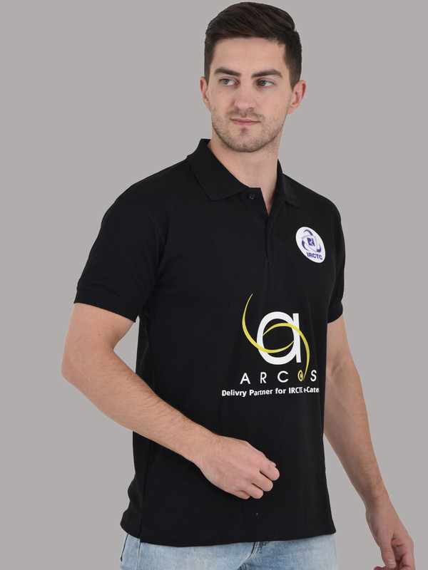 Short sleeves black colour Polo made in Cotton Rich Pique fabric with soft hand feel, Branding done by screen printing at front, back and sleeve to increase the brand visibility. Ribbed collar and cuff. Wear this smart corporate uniform t-shirt to enhance the brand visibility. Available in others colour too.