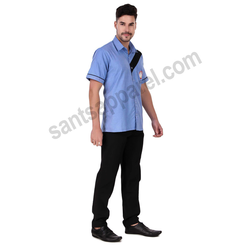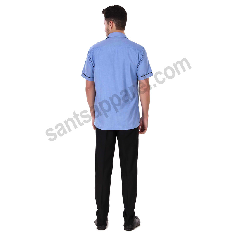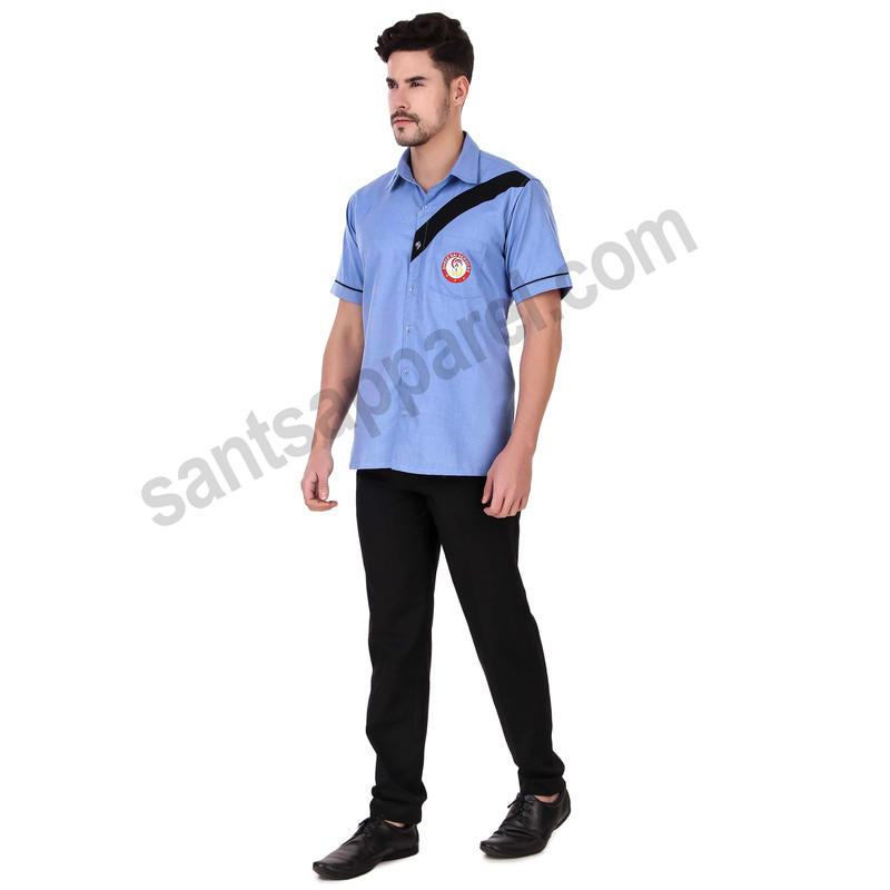 Blue half sleeve Safari look Shirt, has front customization, Made with Polly Cotton fabric, logo printing is done on pocket for brand visibility, can be used for House keeping and restaurant staff uniform