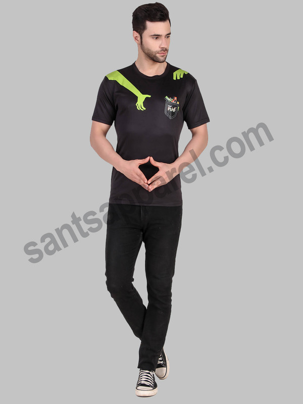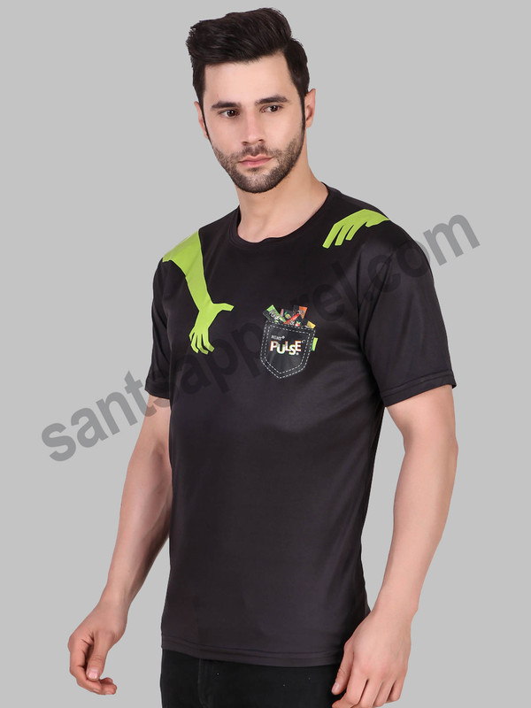 Short sleeves black round neck t-shirt made in honey cool fabric. Full sublimation printing done to increase the brand visibility. Wear this smart t-shirt to increase the motivation level for new product launch. Available in others colour too.