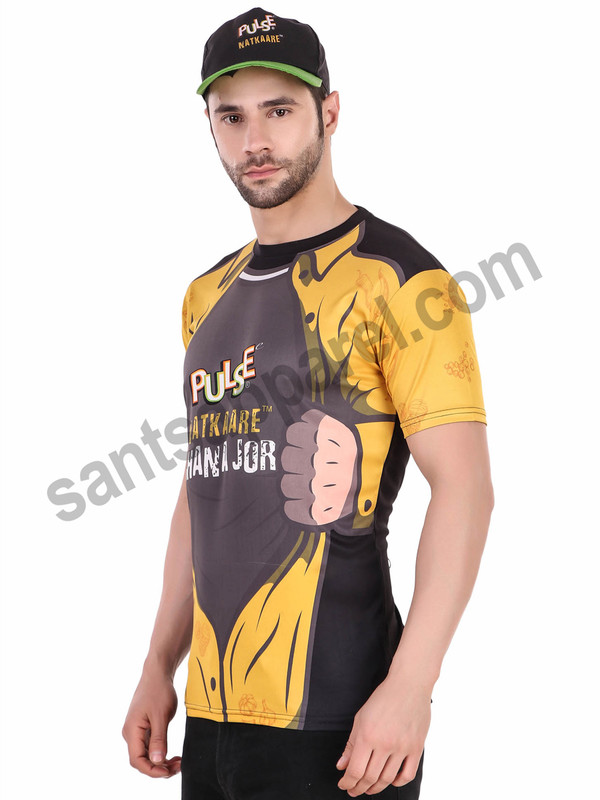 Short sleeves mix color round neck t-shirt made in honey cool fabric. Full sublimation printing done to increase the brand visibility. Wear this smart t-shirt to increase the motivation level for new product launch. Available in others color too.