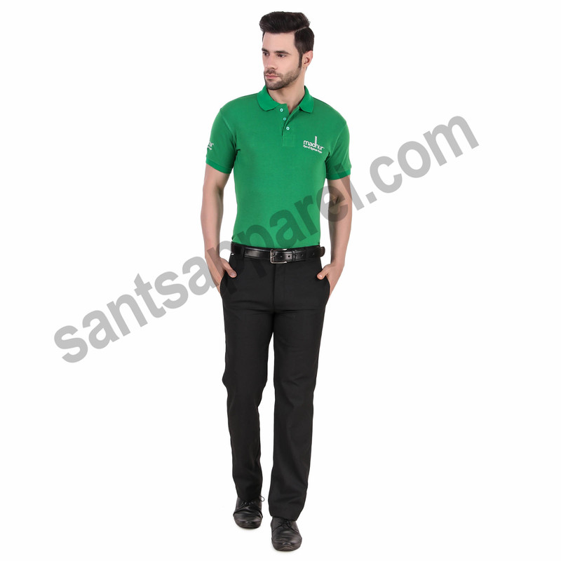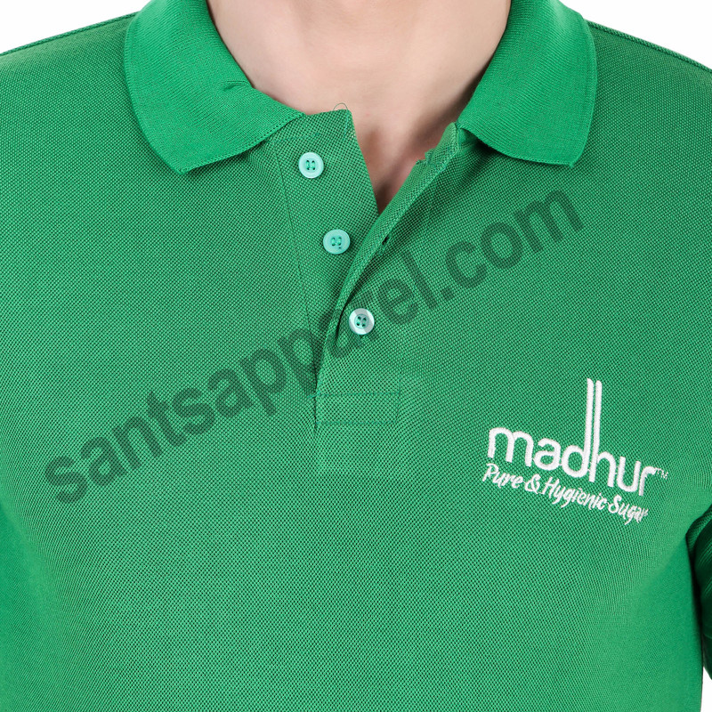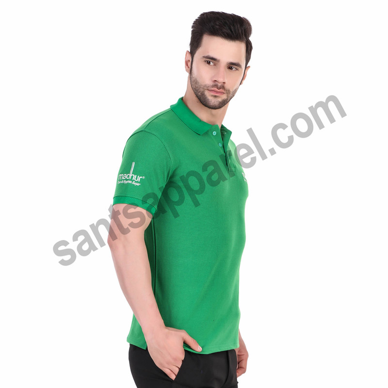 Short sleeves green polo made in Spun Pique fabric with soft hand feel including embroidery at front and back to increase the brand visibility. Ribbed collar and cuff matching to create a smart formal corporate look. Available in others color too