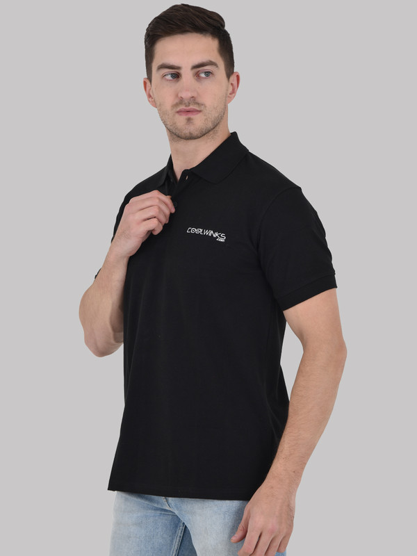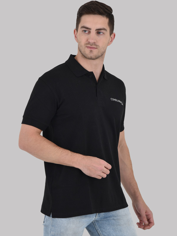 Short sleeves black colour Polo made in Cotton Rich Pique fabric with soft hand feel, Branding done by Embriodrery at front to increase the brand visibility. Ribbed collar and cuff. Wear this smart corporate uniform t-shirt to enhance the brand visibility. Available in others colour too.