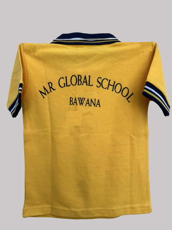 SCHOOL HOUSE UNIFORM T-shirt and Lower, Comfortable and sporty design of school house uniform for your smart school kids, It has very comfortable and sporty gold yellow colour school tshirt, collar or polo Tshirt in half sleeve, Cotton Matty fabric, has two button with customized knitted collar & sleeve cuff, school logo Printing at front, Tshirt back – School name. This school house uniform pair has got stylish and sporty lower in cotton hosiery, Gold Yellow stripes on lower to get the perfect match with the tshirt colour. Available in more colours – RED, Green, blue, royal blue and etc.