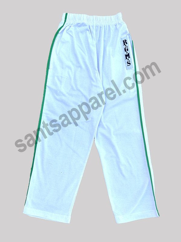 SCHOOL SPORTS & HOUSE UNIFORM T-shirt and PANT. Comfortable and sporty design of school sports or house uniform for your school kids, This article has tshirt in white colour with contrast colours of knitted collar, placket & sleeve tape, school logo printing at front. These tshirts are paired with Cotton white full pant with colour contrast pockets. Available in more colours.