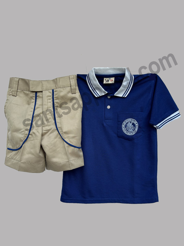 SCHOOL UNIFORM, Comfortable and smart design for your smart school kids, It has very comfortable and eye catchy blue colour school collar & polo Tshirt in half sleeve, Cotton Matty, has two button with customized knitted collar & sleeve cuff, This school t-shirt comes with Pocket with school logo printing along with customized school nicker or school half pant