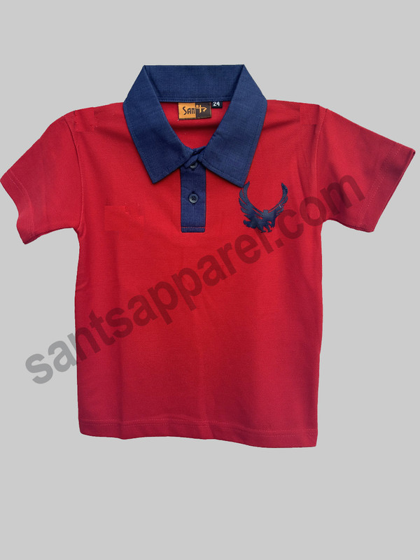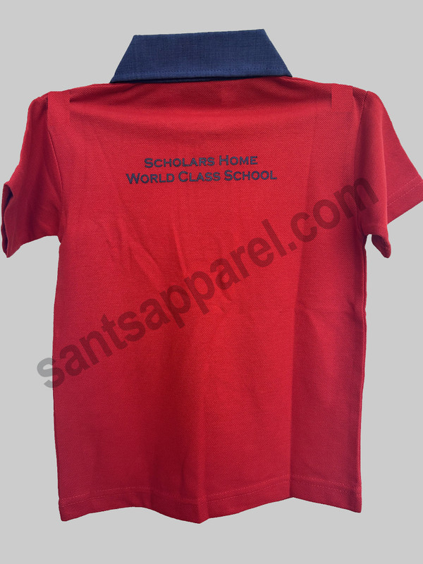 SCHOOL UNIFORM, Beautiful and comfortable design for your smart school girls students it has very comfortable and eye catchy RED colour school collar & polo T-shirt in half sleeve, Cotton Matty fabric, has two button with customized Placket & Collar, school logo printing at front, Paired with customized school Skirt, having red colour fabric pockets to get the perfect match with the tshirt