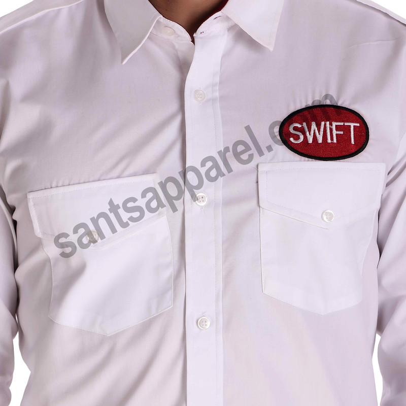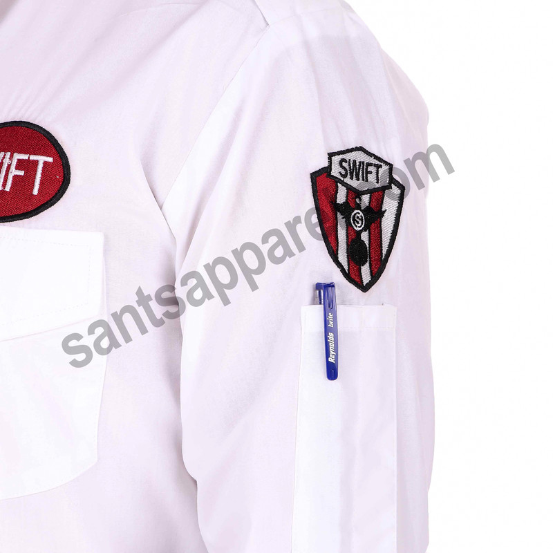 White Full Sleeve Security uniform, made with Polly cotton fabric and has two front pockets with flaps, logo embroidery is done for brand visibility