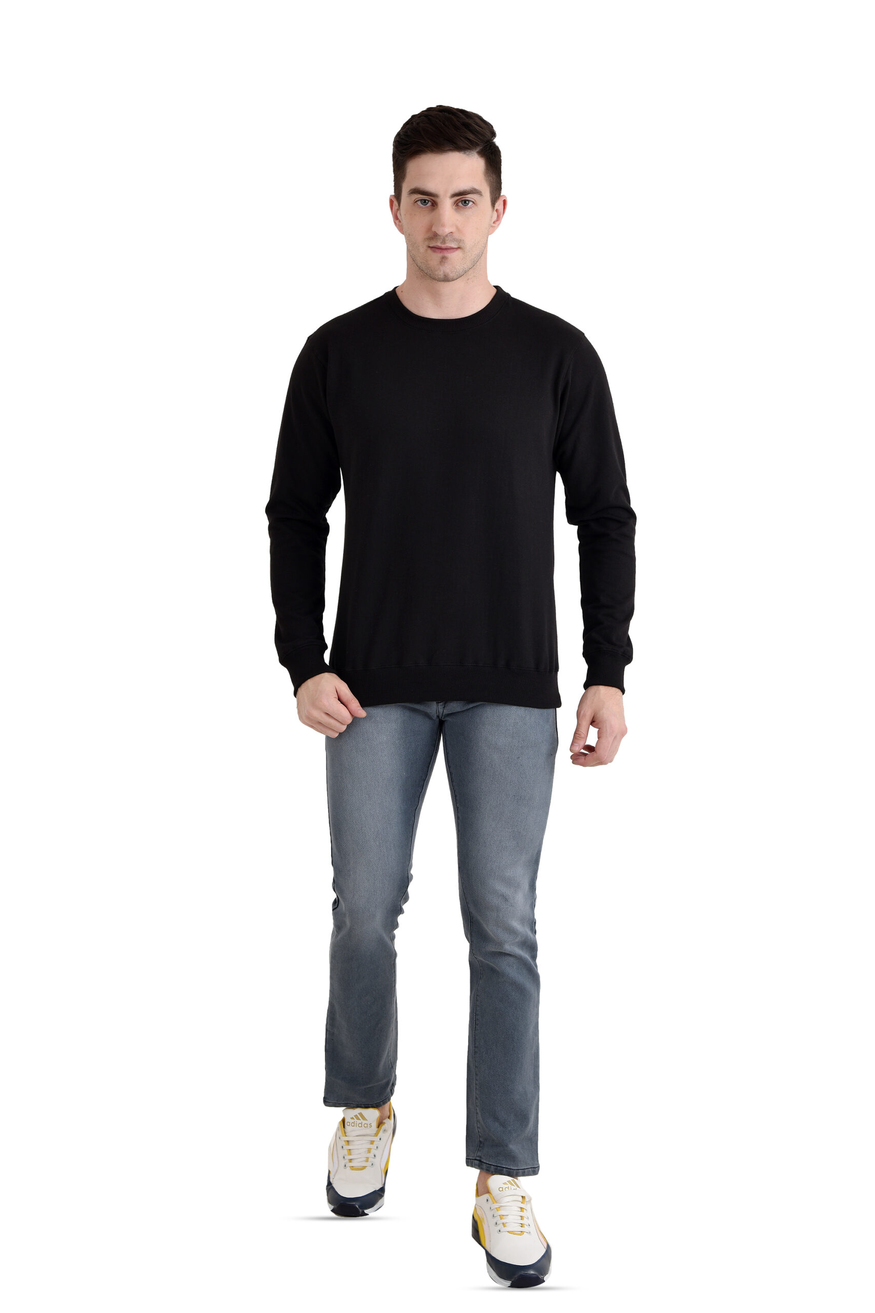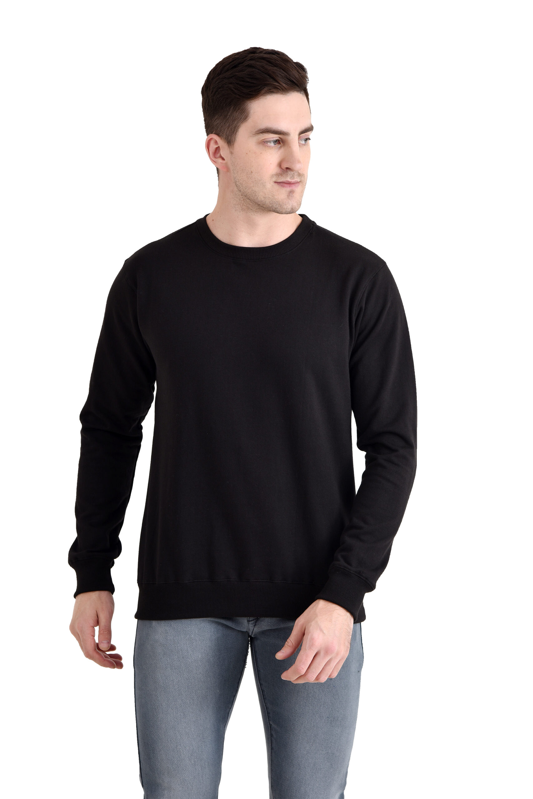 Men Round Neck Basic Sweatshirt BLACK